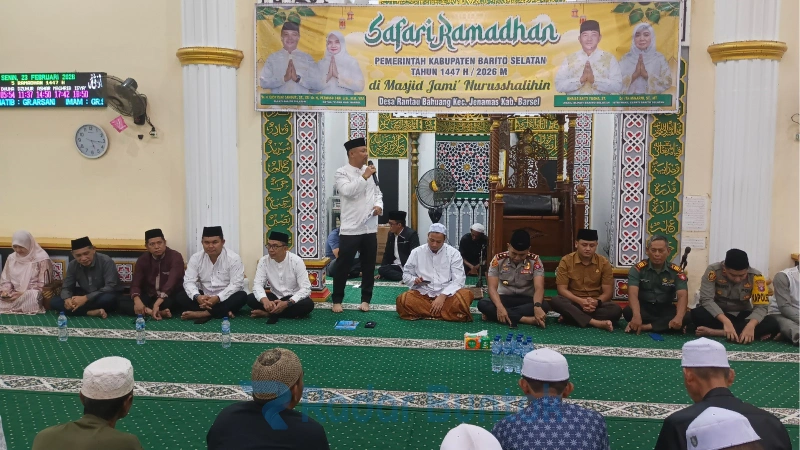 Hal tersebut disampaikan Eddy Raya Samsuri saat kegiatan Safari Ramadhan Pemerintah Kabupaten (Pemkab) Barsel bersama tokoh agama, tokoh masyarakat dan organisasi pemuda di Masjid Jami’ Nurussalihin, Desa Rantau Bahuang, Kecamatan Jenamas, Senin (23/2).